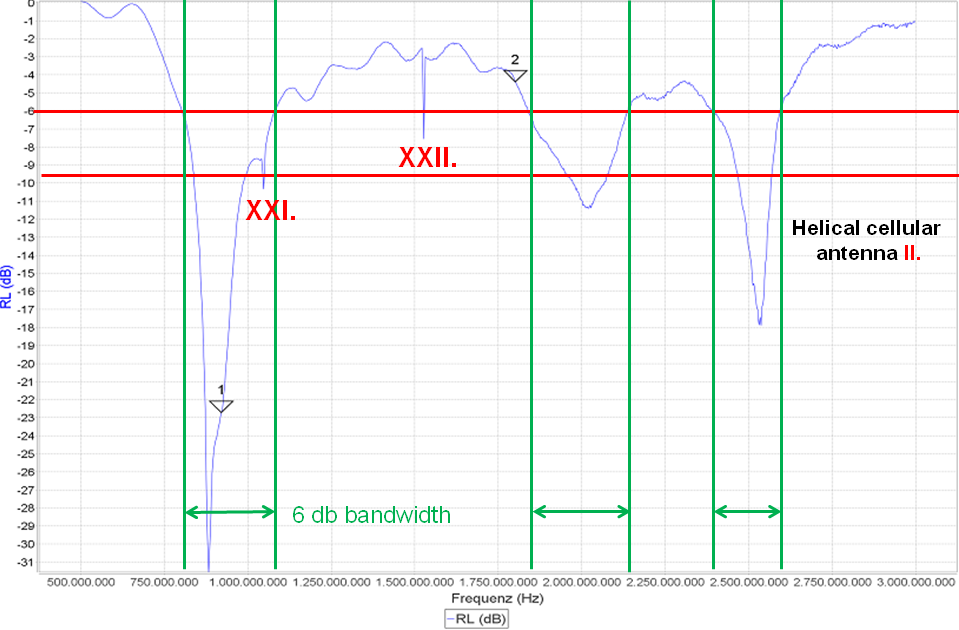 The graph shows the two faults marked with XXI and XXII again. The triangle marker 1 has left and rights a nice gap to cover the 6 dB bandwidth. It is already more than 250 MHz, and to cover GSM 850 plus GSM 900 we need 136 MHz only. Even the gap at GSM […]